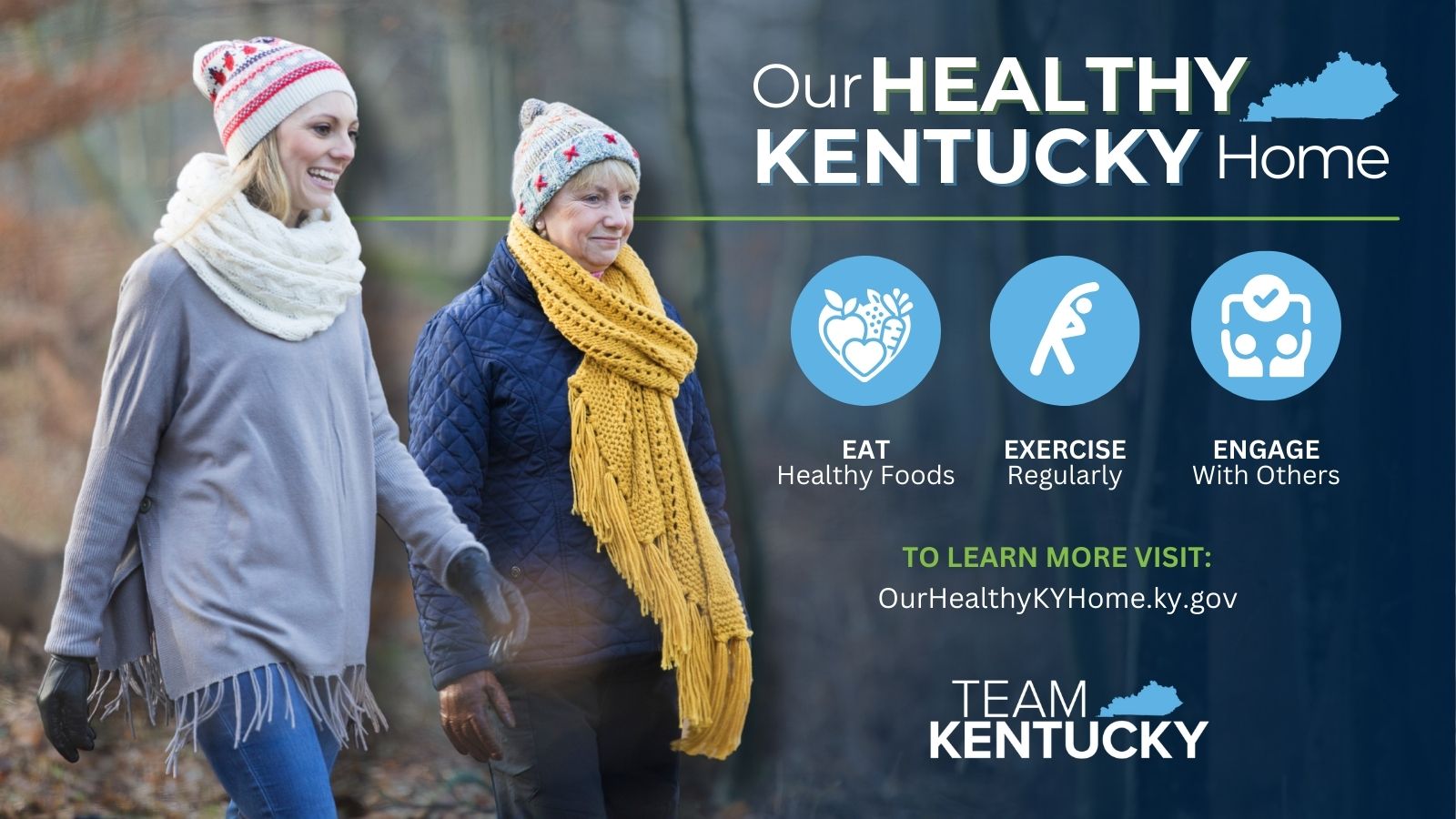 A Team Kentucky initiative to engage and inspire Kentuckians on a personal journey of achievable health and wellness improvements. Year two of the Our Healthy Kentucky Home Initiative will continue to promote simple, healthy lifestyle changes with a special focus on helpful health and wellness programs available to all Kentuckians throughout the commonwealth.
